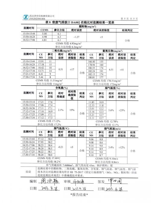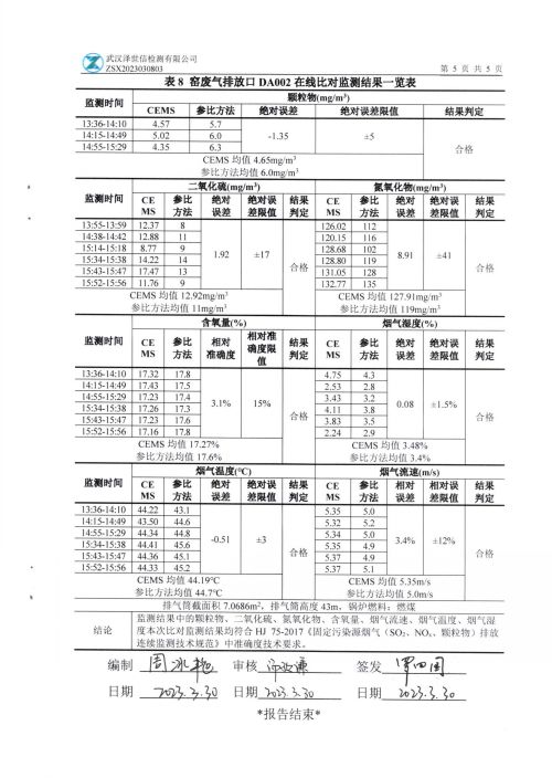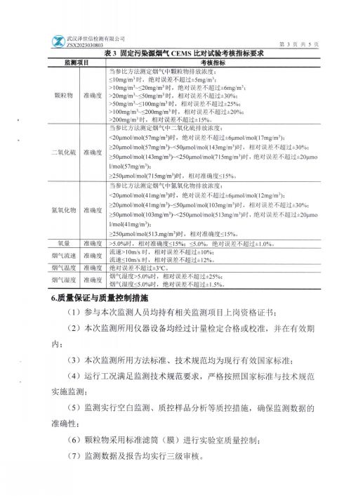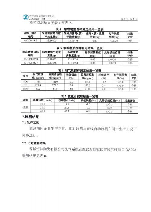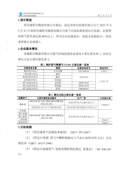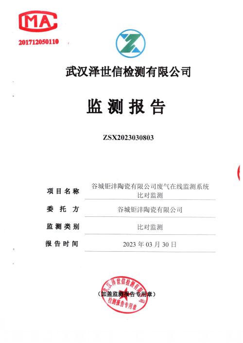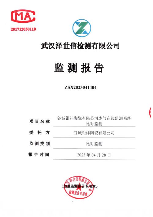 谷城钜沣陶瓷有限公司废气在线监测系统对比监测