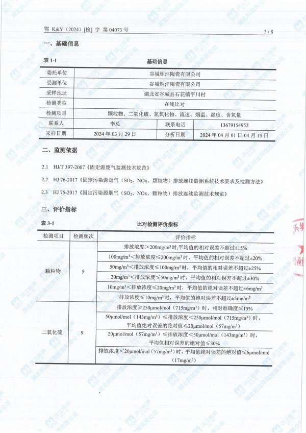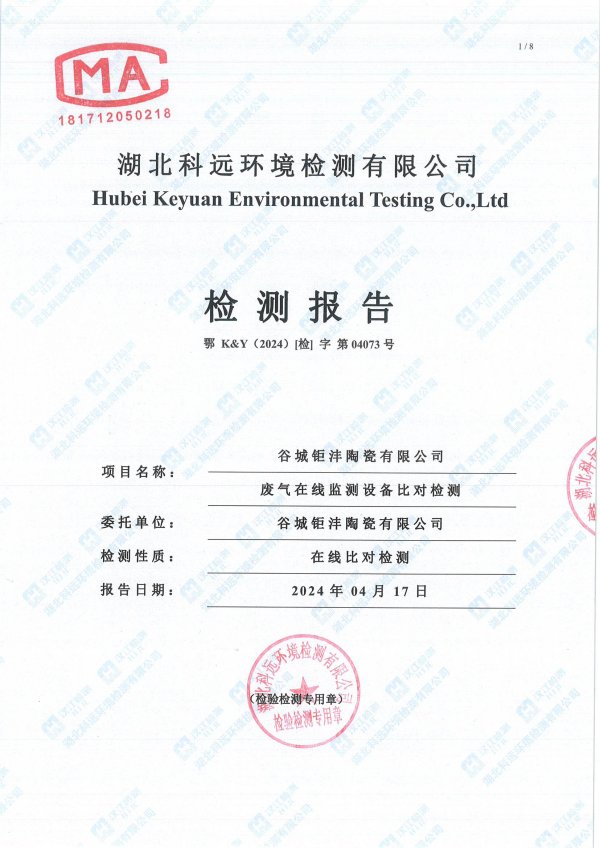 鄂 K&Y(2024)[检] 字 第04073号 N240018-1 谷城钜沣陶瓷有限公司废气在线设备比对检测-扫描件(1).zip